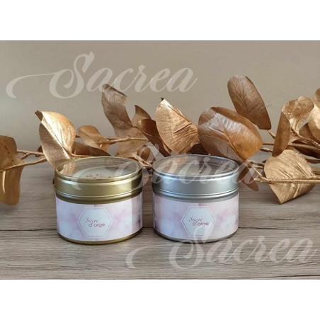 Cette bougie vous révèle, au hasard, un bracelet en acier inoxydable doré ou argenté selon la couleur du contenant que vous choisissez (contenant en or = bijou doré / contenant en argent = bijou argenté).